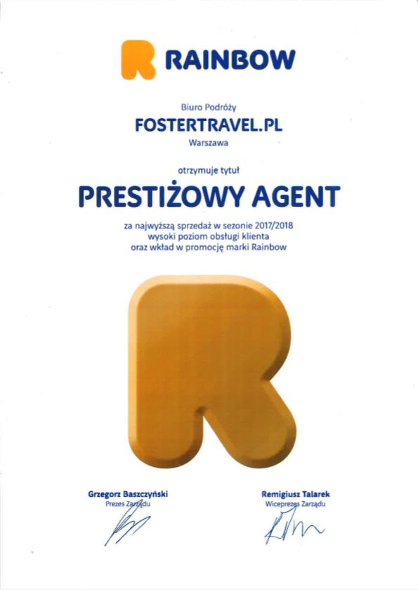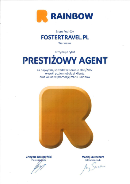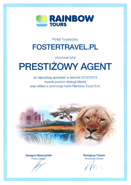 - Rainbow Tours – wyróżnienia za najwyższą jakość obsługi i wyjątkowe wyniki sprzedaży.