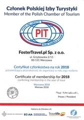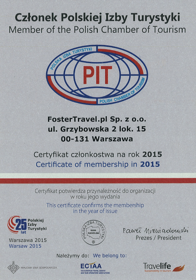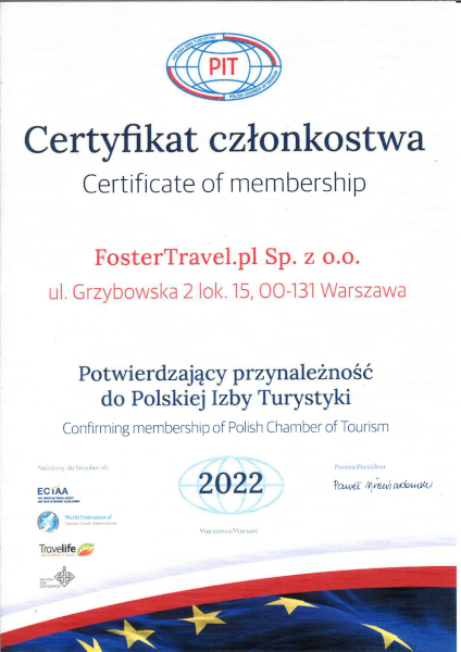 - Polska Izba Turystyki – wieloletnie członkostwo i rekomendacje, potwierdzające naszą wiarygodność i stabilność.